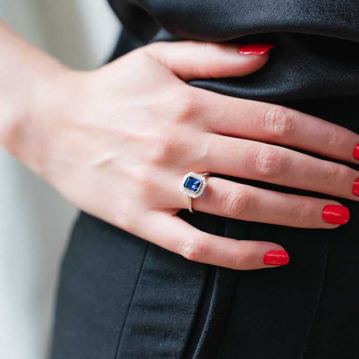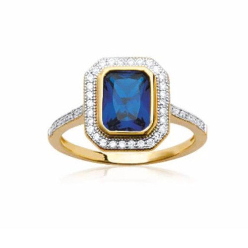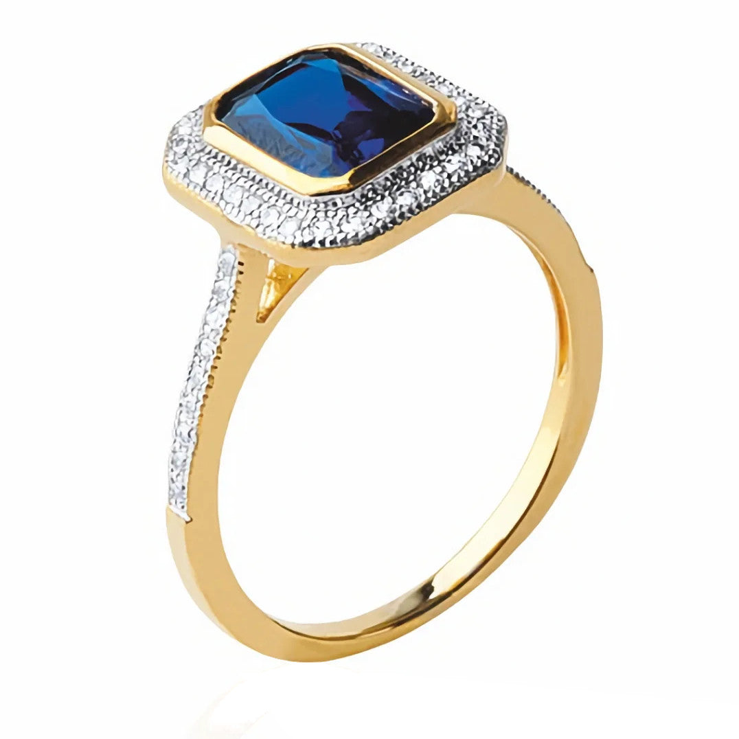 The 'Take A Chance On Love' Ring features an emerald cut Sapphire coloured centre stone surrounded by a cluster of cubic zirconia set on an 18k gold plated band. This is the stand out ring you have been looking for. it looks sharp and sophisticated, to be worn with a smart or semi smart dress. Would make a wonderful gift, even for yourself!